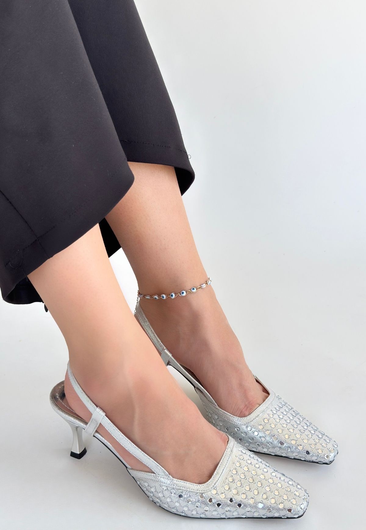 • Sione Gümüş Cilt Topuklu Ayakkabı