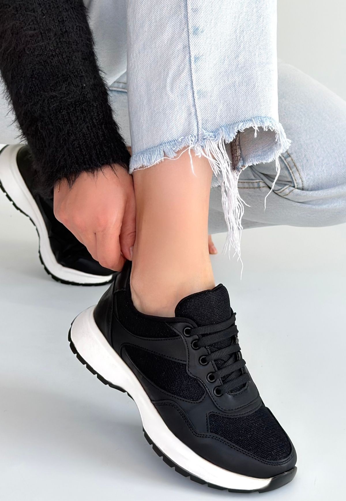 Slar Siyah Cilt Simli Bağcıklı Spor Ayakkabı