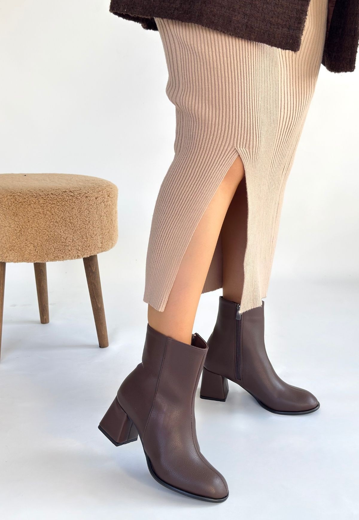 • Tendy Kahverengi Cilt Topuklu Bot