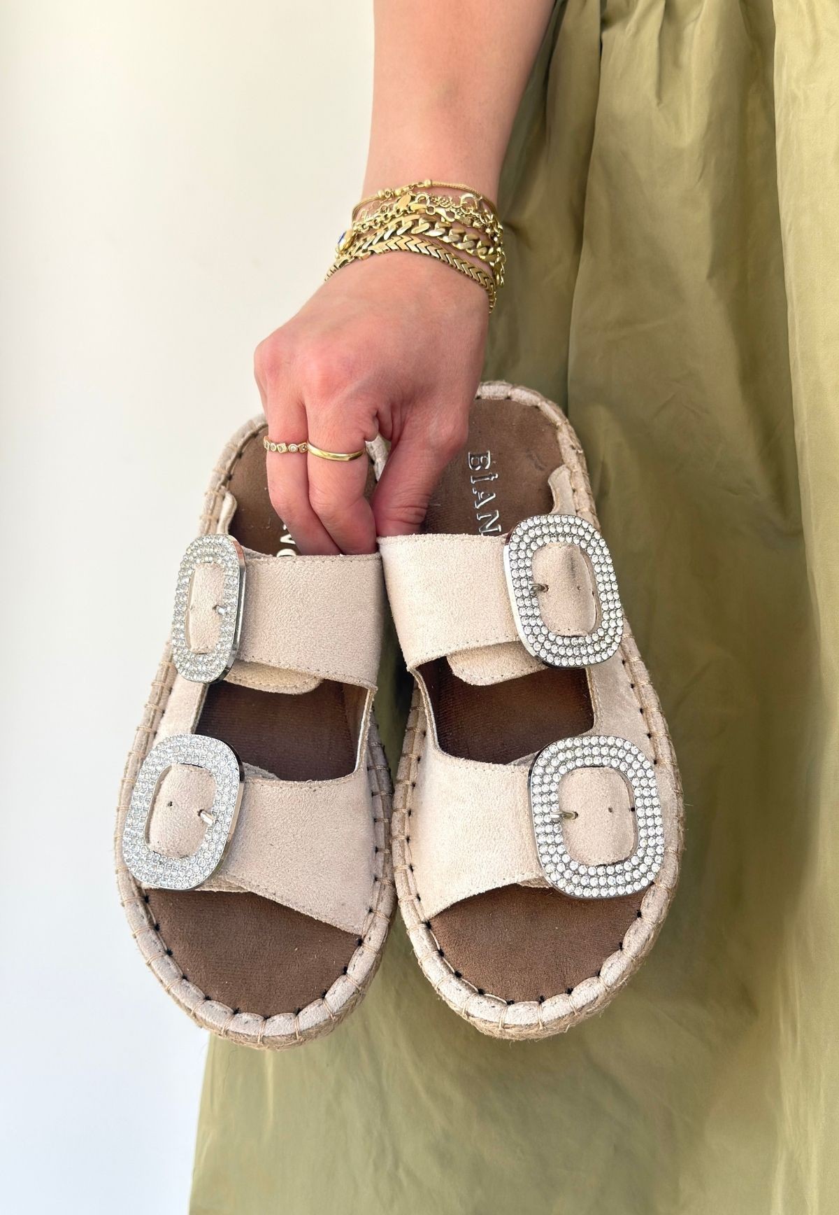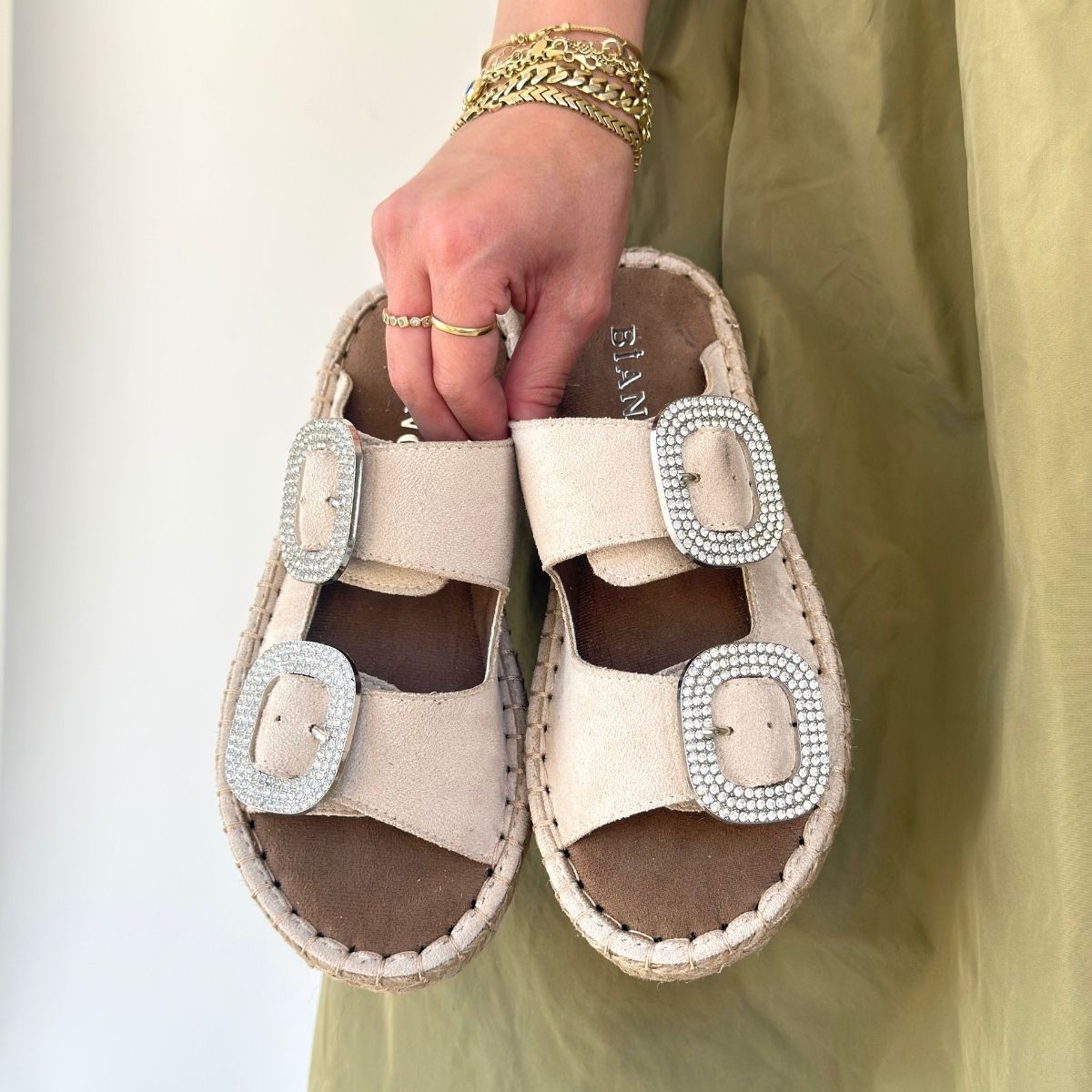 Terlik Hertas Bej Nubuk Tokalı Terlik