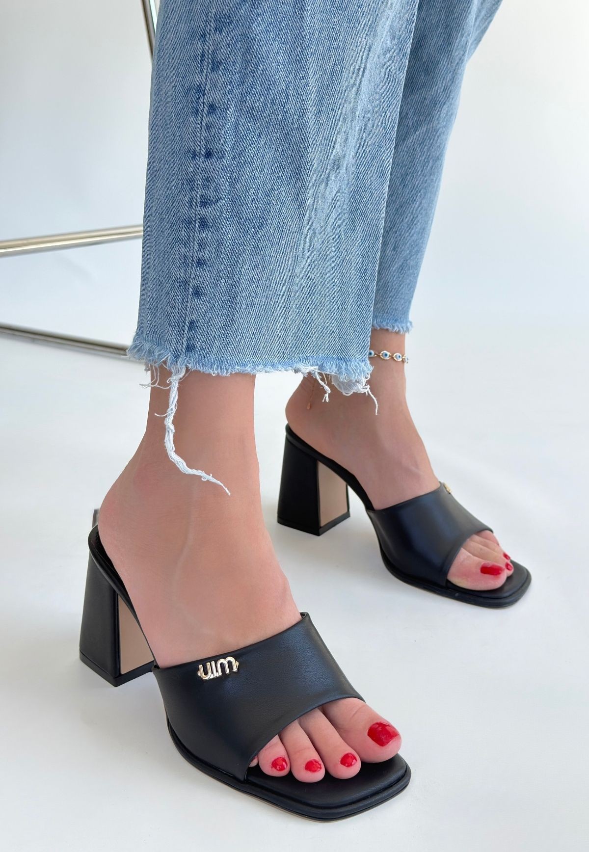 • Miyon Siyah Cilt Topuklu Terlik