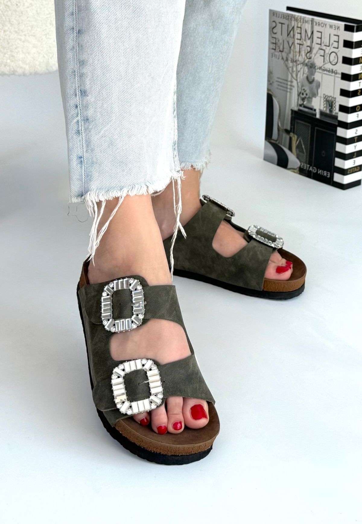 • Nool Yeşil Nubuk Terlik