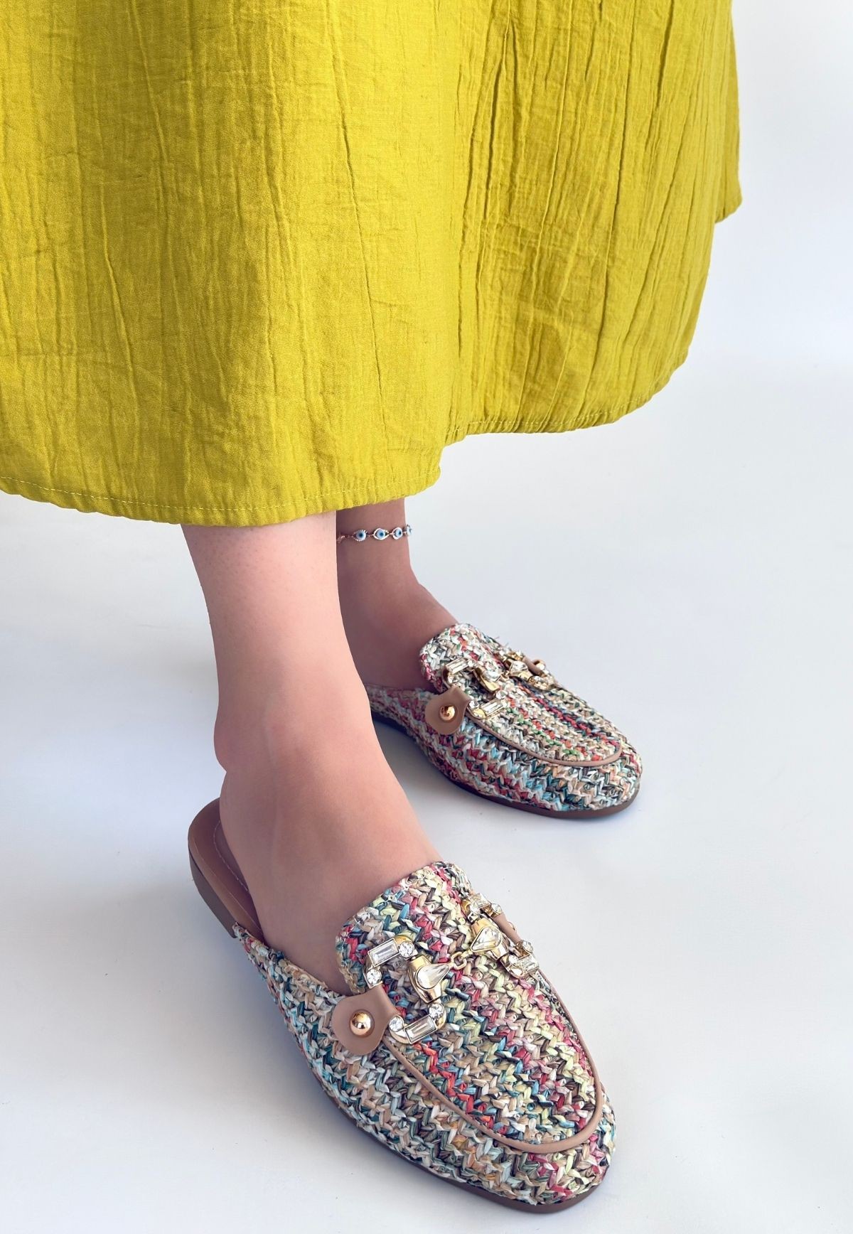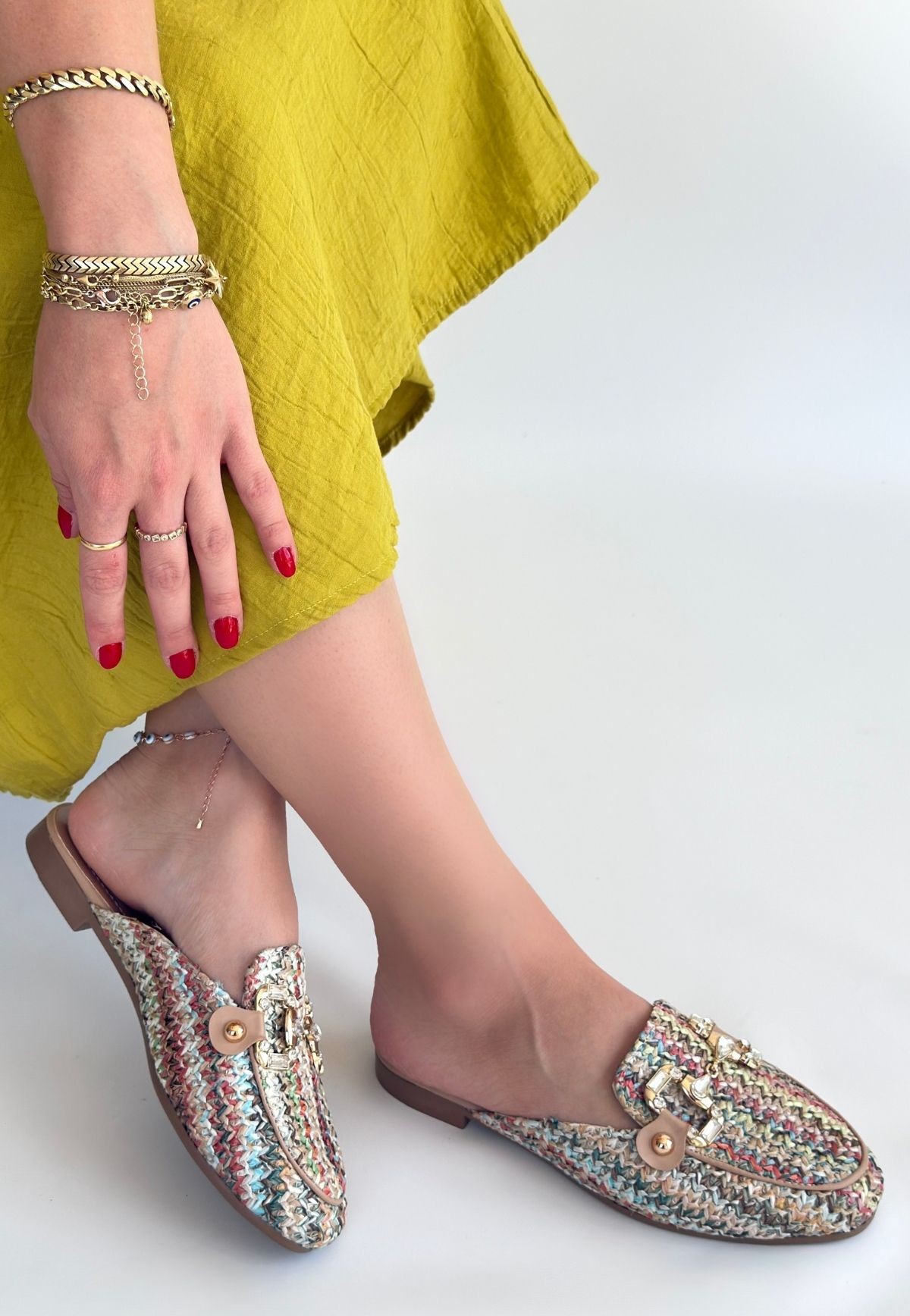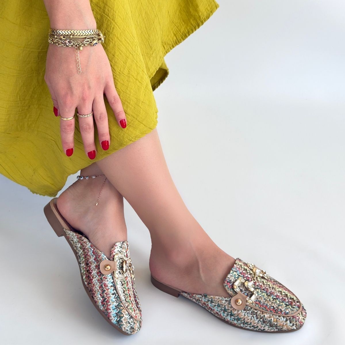 Yenda Renkli Dokumalı Terlik