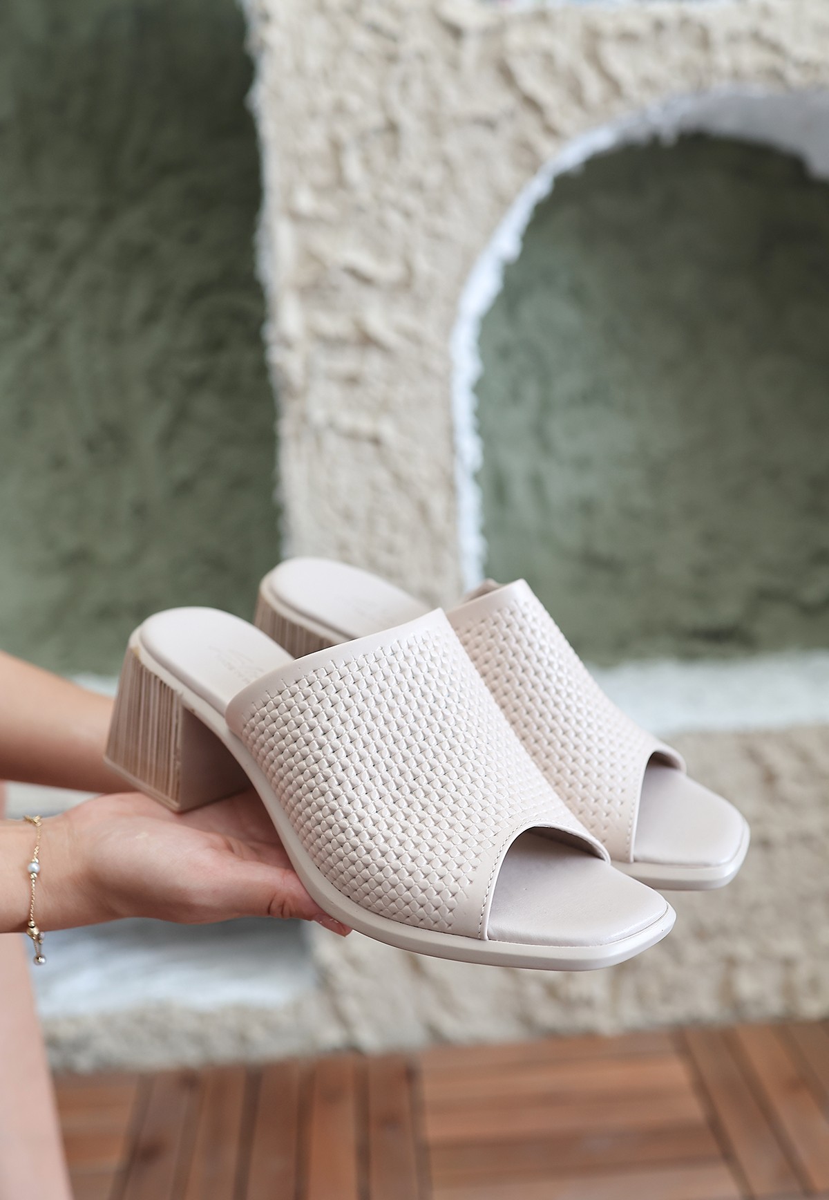 Terlik Zanna Bej Cilt Topuklu Terlik