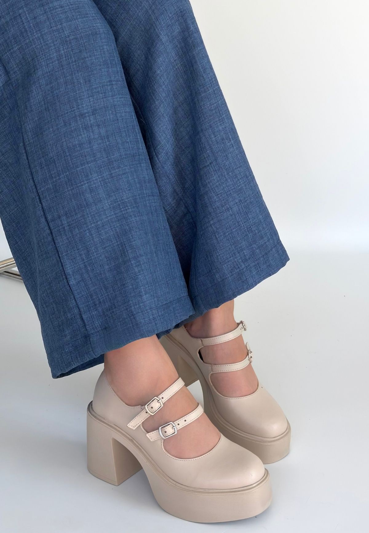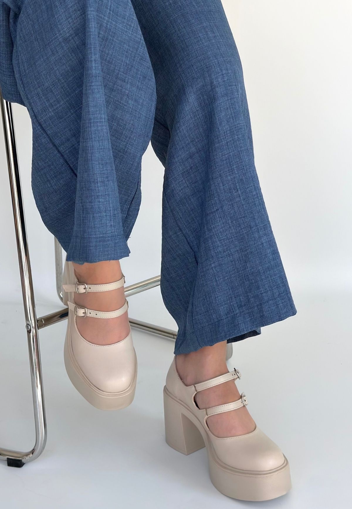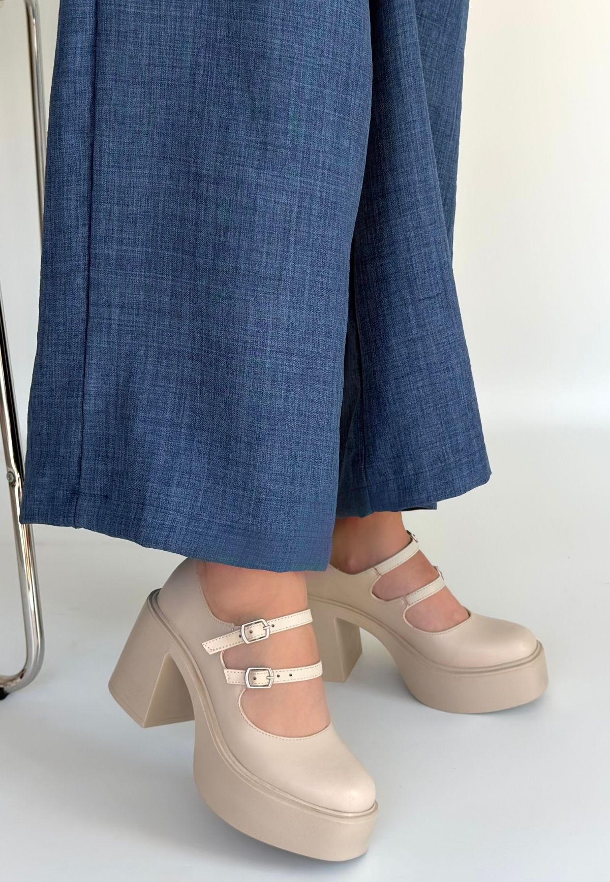 Topuklu Jarlo Bej Cilt Dolgu Topuk Ayakkabı