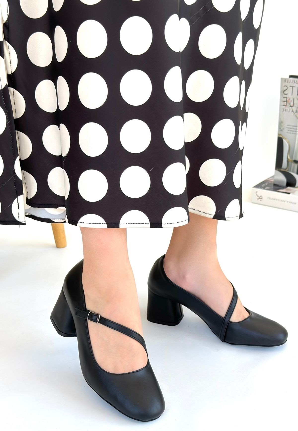 Topuklu Kier Siyah Cilt Topuklu Ayakkabı