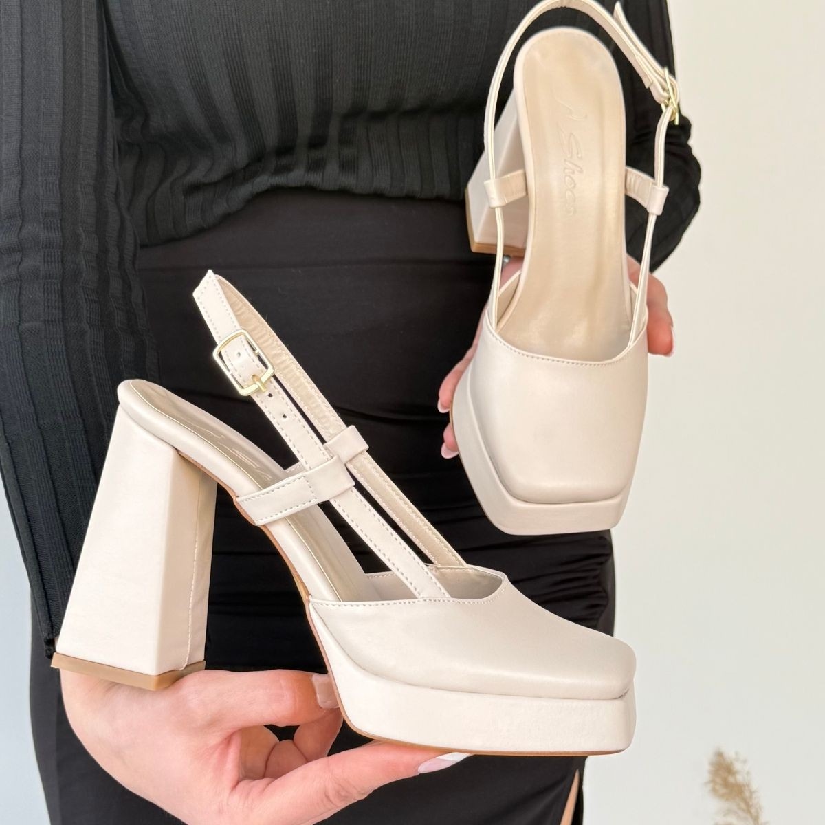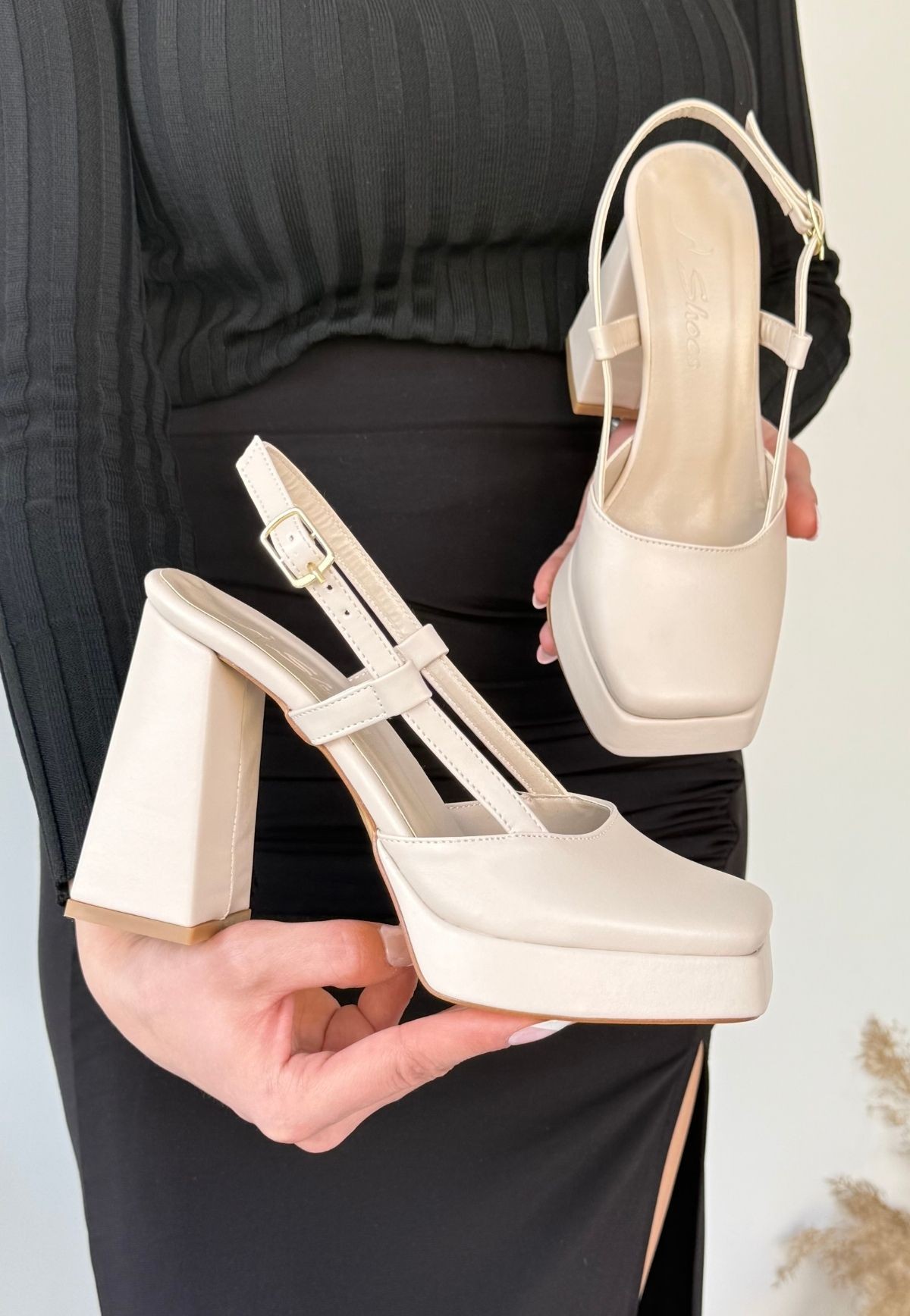 Topuklu Mety Bej Cilt Topuklu Ayakkabı