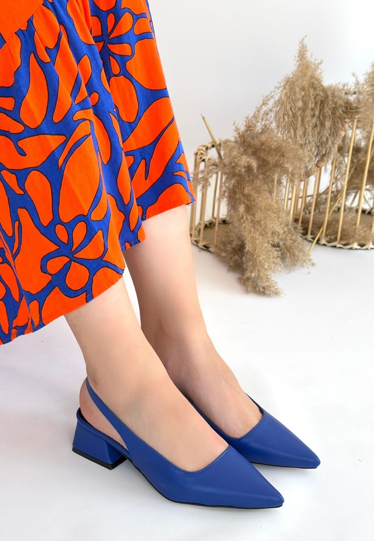Topuklu Morji Mavi Cilt Topuklu Ayakkabı