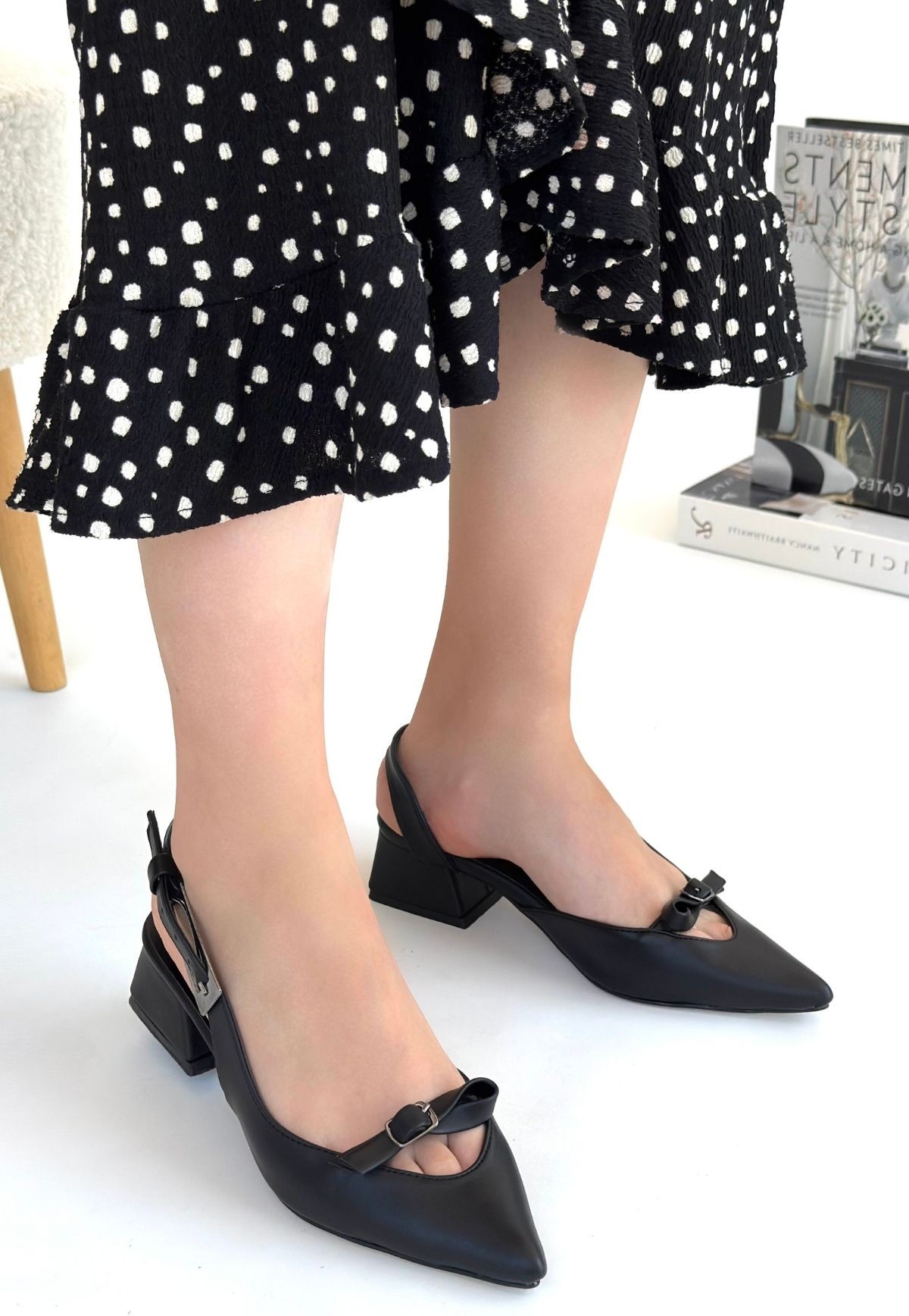 • Rewat Siyah Cilt Topuklu Ayakkabı