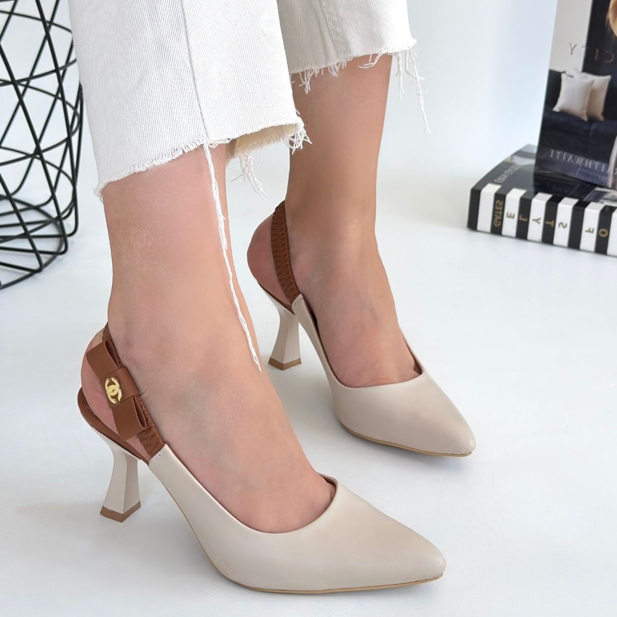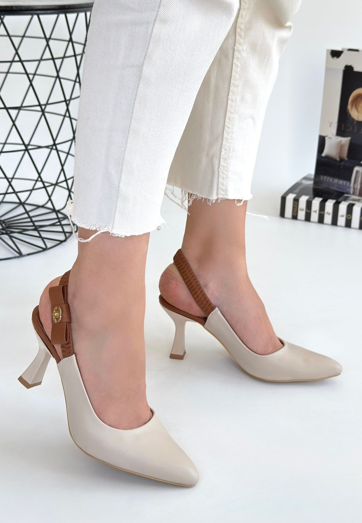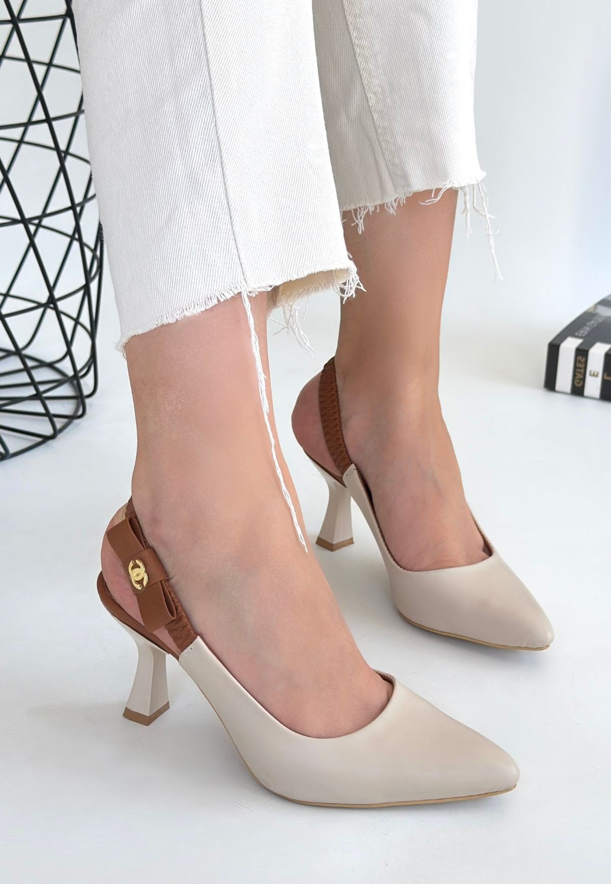 Topuklu Toran Bej Cilt Topuklu Ayakkabı