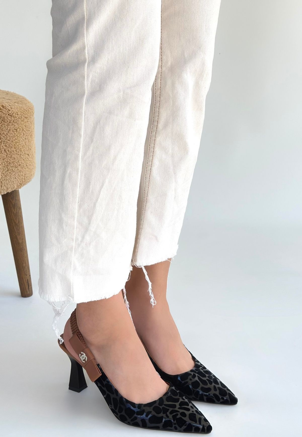 Topuklu Toran Siyah Rugan Siyah Süet Detaylı Topuklu Ayakkabı