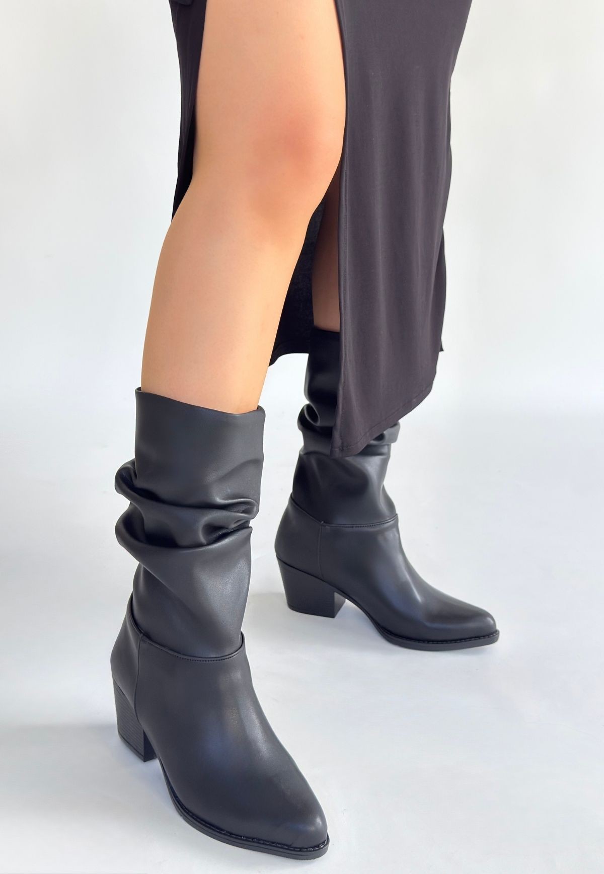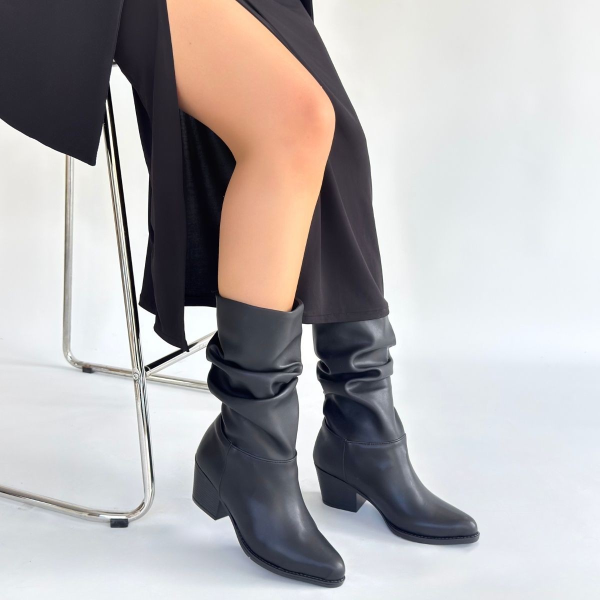 Yior Siyah Cilt Topuklu Bot