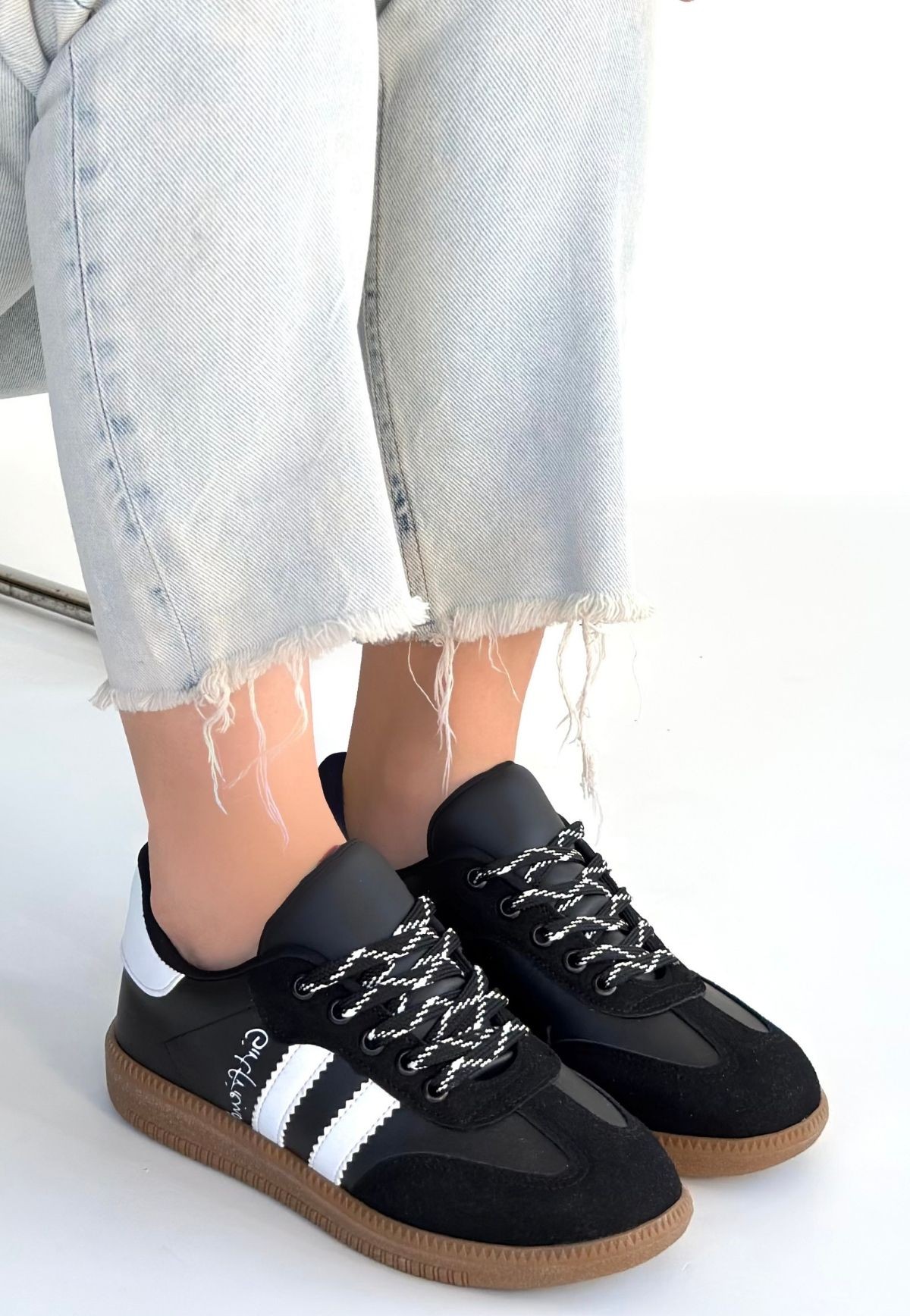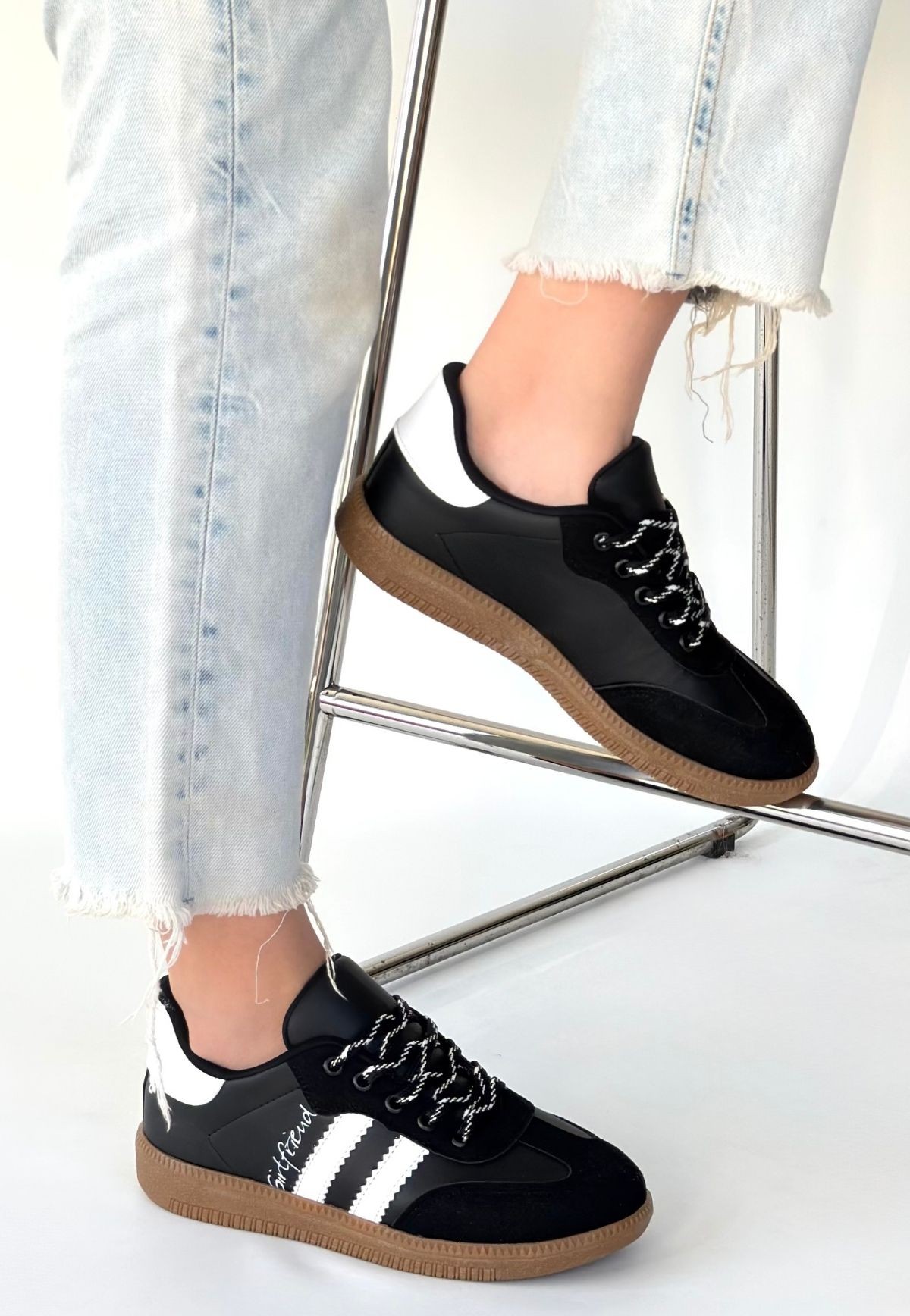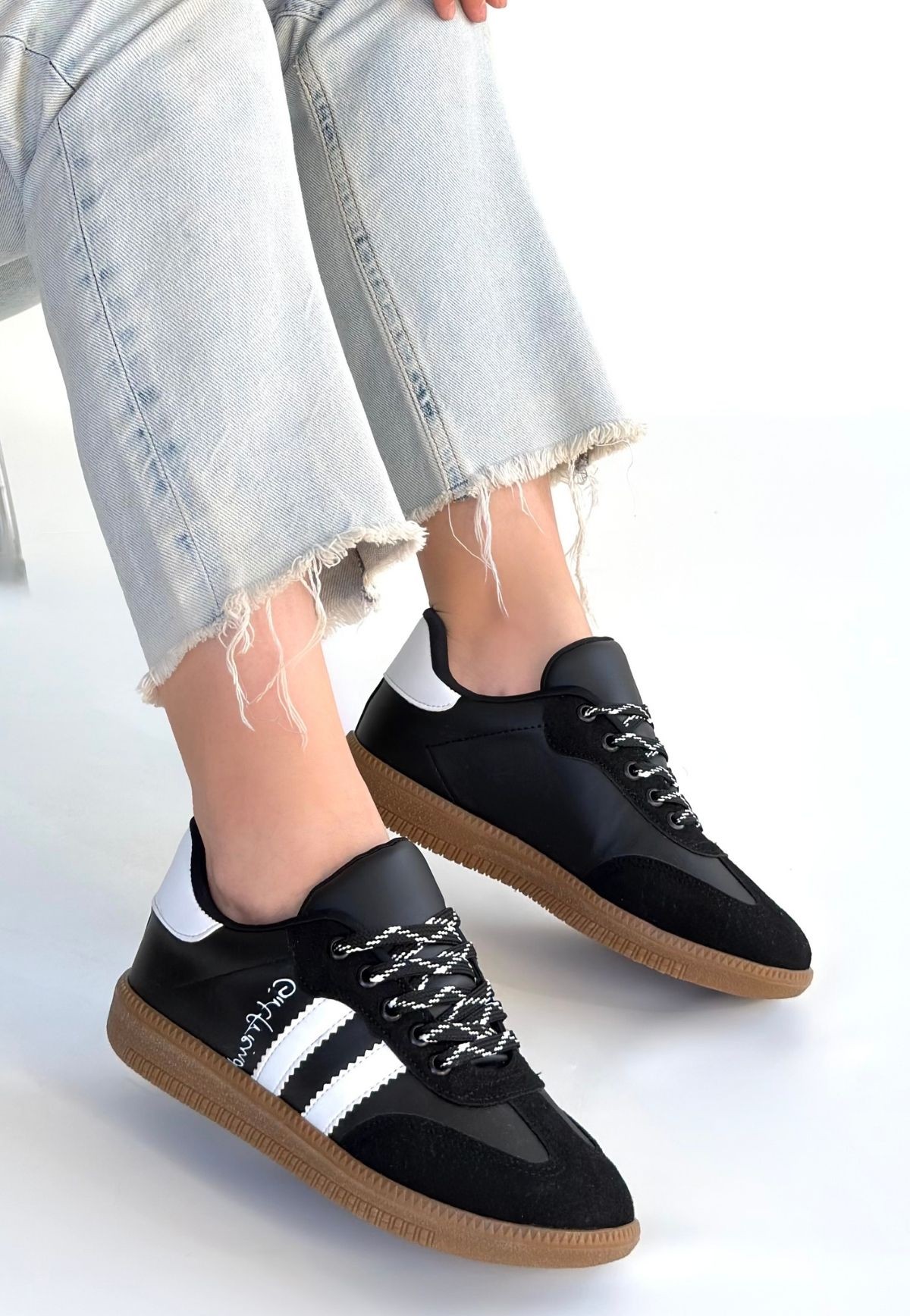 • Zerti Siyah Cilt Bağcıklı Spor Ayakkabı