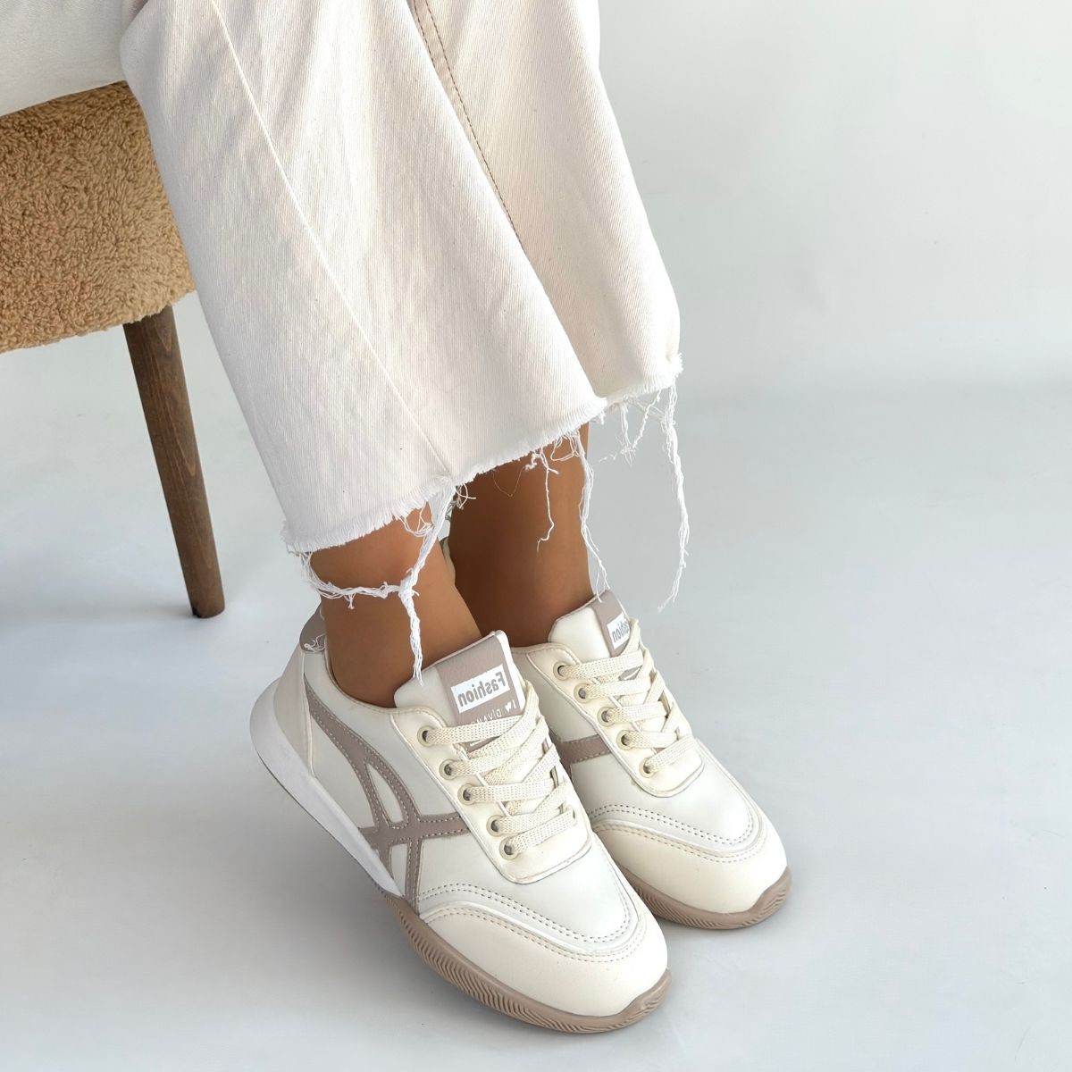 • Zlay Bej Cilt Vizon Detaylı Bağcıklı Spor Ayakkabı
